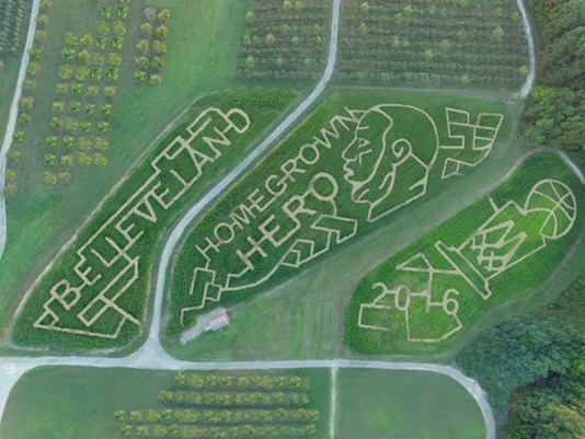 Один из фермеров американского штата Огайо создал необычный рисунок на кукурузном поле. С помощью комбайна он выстриг целый триптих, посвященный победе «Кливленд Кавальерс» в чемпионате НБА.