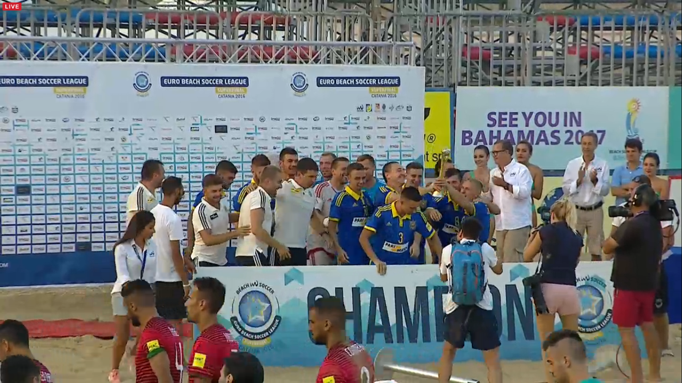 После этого наши игроки, ведомые опытнейшим вратарем Виталием Сидоренко, выстояли под отчаянным штурмом португальцев и впервые в истории добыли чемпионское звание Euro Beach Soccer League!
