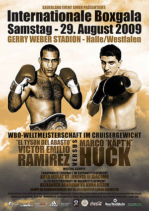 2009 год – арена «Gerry Weber Stadium», Халле, Германия, чемпион мира по версии WBO в первом тяжелом весе Виктор Эмилио Рамирес, проигрывает единодушным решением судей Марко Хуку, теряя свой титул.