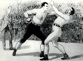 1892 год – на ринге, установленном в «Olympic Club», Новый Орлеан, Луизиана, состоялся официальный поединок между первым чемпионом мира по обе стороны Атлантики, как на голых кулаках, так и в перчатках Лжон Лоуренц Салливан и спортсмен, которого историки бокса называют отцом современного бокса, Джеймс Джон Корбетт. Прежде они встречались на ярмарке, проходившей в Сан-Франциско 26 июня 1891 года и их бой был этаким спаррингом, который был развлечением, нежели спортивным событием. В этот раз Салливан предложил поединок всем желающим выйти против него в ринг, но при условии, если они смогут выставить на кон свои десять тысяч долларов против его двадцати пяти. Победитель должен был получить все 35 000 USD. Вторым условием Салливана стало то, что его соперник не должен был быть негром. Корьетт и его менеджер Уильям Брэди приняли вызов Джона Лоуренца и положив на кон свои десять тысяч бросили вызов Салливану, который был фаворитом 4 к 1. Билеты на поединок продавались от 5 до 15 долларов. После начала поединка Корбетт элегантно начал танец вокруг бросающегося на него Салливана, умело избегая ударов Лоуренца и нанося свой джеб и удары правой в голову и корпус. К 21 раунду Салливан был избит и измочален. Его лицо было покрыто гематомами, а из носа и рта текла кровь. Лоуренц все чаше стал отступать к канатам и опускать руки. Корбетт дваджы сбивал Салливана на помост ринга. И если первый раз Лоуренц смог подняться на ноги, то второе падение привело к проигрышу нокаутом. Это был последний бой великого Салливана на ринге и финалом его карьеры. А Корбетт…. Корбетт проснулся утром следующего дня всемирно-известным чемпионом.