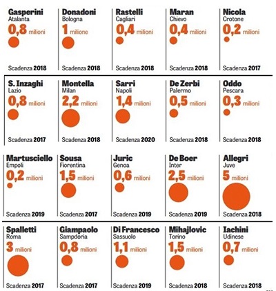 La Gazzetta Dello Sport опубликовала данные об окладах игроков Серии А в сезоне 2016/17