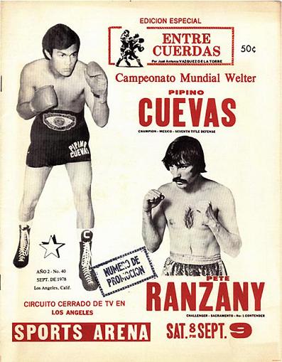 1978 год – “Hughes Arena”, Сакраменто, Калифорния, Пипино Куэвас в седьмой раз защищает титул чемпиона мира по версии WBA во втором полусреднем весе, нокаутируя во втором раунде Пети Ранзани, который дважды был сбит на помост ринга во втором раунде, но после продолжения поединка был прижат и разбит ударами Пипино возле канатов.