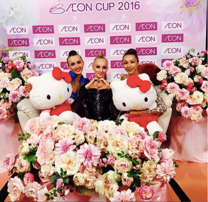 Третье место и «бронзовые» медали ушли в копилку Украины, которую представляли гимнастки известнейшей «Школы Дерюгиных» в лице неизменного лидера команды Анны Ризатдиновой, второго номера украинской сборной Виктории Мазур и юниорки Алёны Дьяченко. Обладательница бронзовой награды Олимпийских игр в Рио-де-Жанейро, как её еще называют «Мисс Элегантность» — Анна Ризатдинова отменно прошла все 4 вида программы, набрав высокие 74,866 балла, и завоевала серебряную награду японского турнира. У второго номера украинской команды Виктории Мазур не все получилось: упражнения с обручем (17,350) и лентой (17,533) она прошла успешно, чего не скажешь о мяче (15,466) и булавах (15,033). 15-летней Алене Дьяченко также не удалось взять индивидуальную награду, хотя после первого соревновательного дня она шла на втором месте. Допустив ошибки в упражнении с мячом, юная украинка опустилась на четвертую позицию.