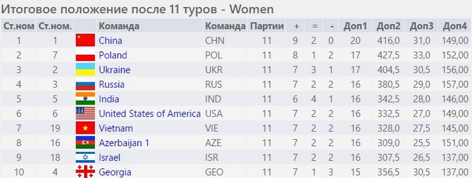Во вторник 13-го сентября в Баку завершился последний 11-й тур всемирной шахматной олимпиады. Соревнования стали успешными для сборной Украины, мужская команда завоевала «серебро», женская – «бронзу».