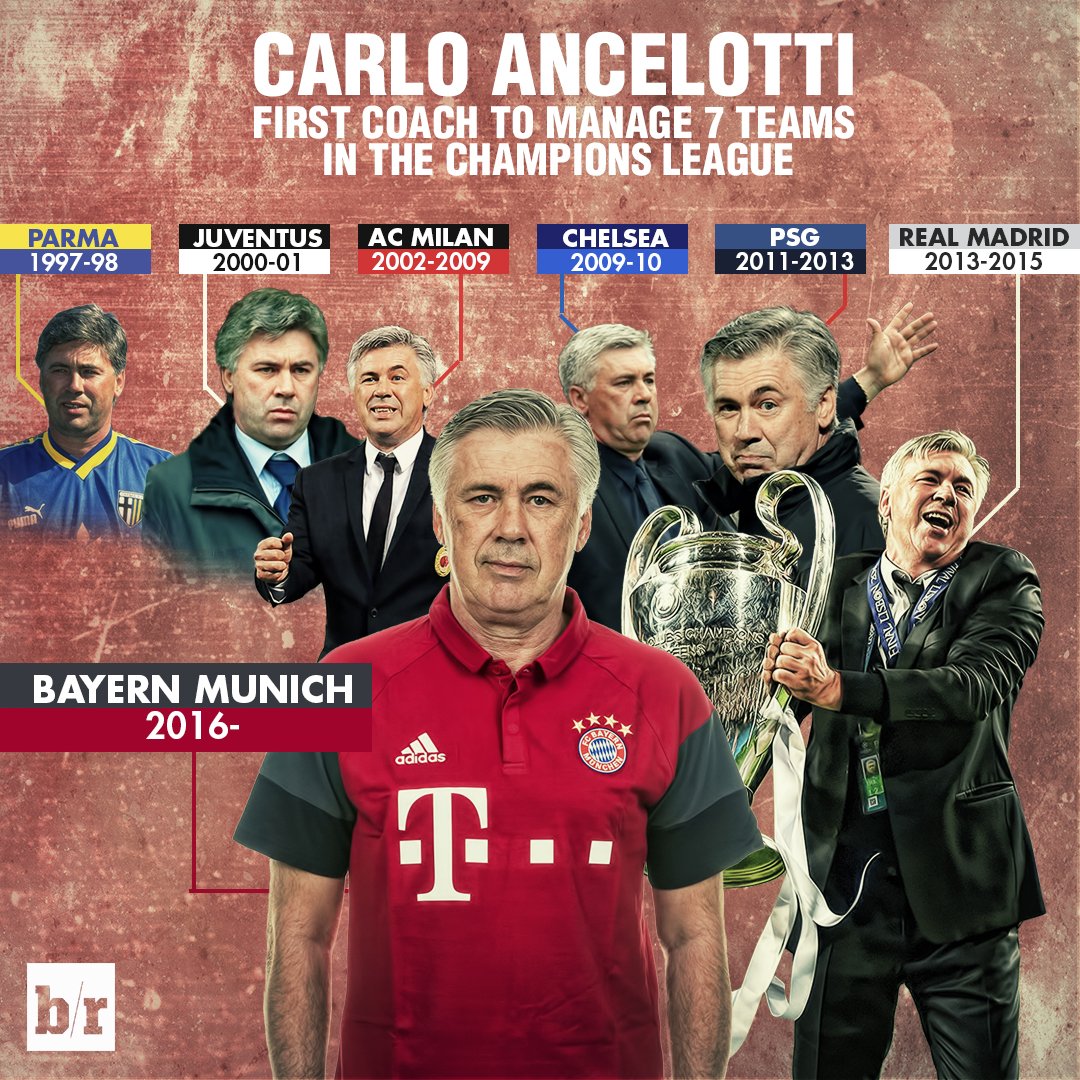 Наставник «Баварии» Карло Анчелотти установил новый рекорд Лиги чемпионов. Итальянский специалист во главе мюнхенского клуба стал первым тренером в истории турнира, которому удалось сыграть в Лиге чемпионов, возглавляя семь разных клубов.
