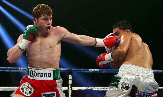 На «Grand Garden Arena», Лас Вегас, Невада, Сауль Альварес, побеждая техническим нокаутом в пятом раунде Хосесито Лопеса, защищает свой титул чемпиона мира по версии WBC в первом среднем весе.