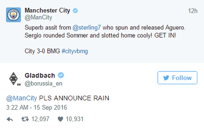 Реакция твиттера «Боруссии М» на то, что счет в матче против «МанСити» стал 0:3