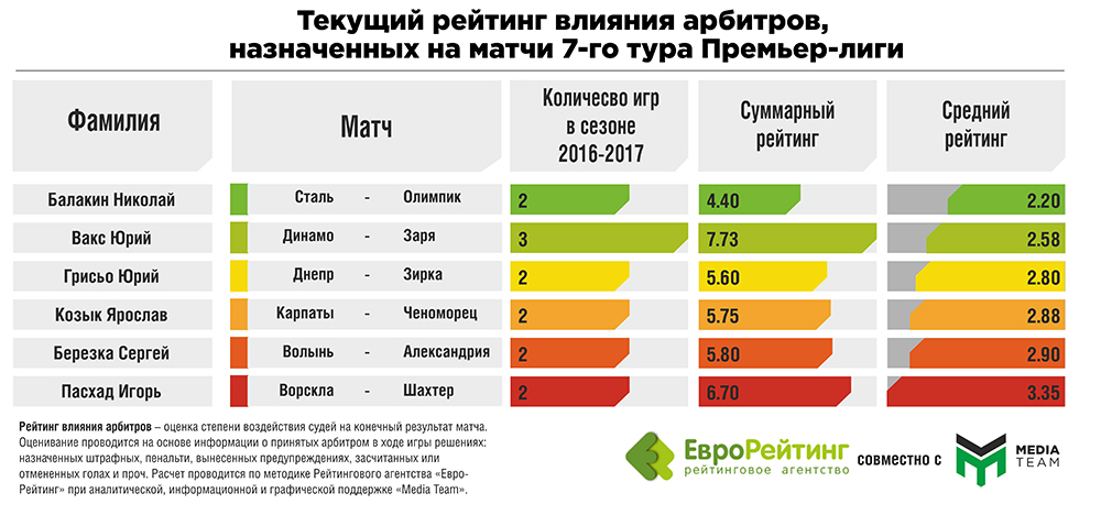 Рейтинг рассчитываются по результатам каждого тура чемпионата Украины. Расчет проводиться по методике Рейтингового агентства Евро-Рейтинг при аналитической, информационной и графической поддержке Media Team.