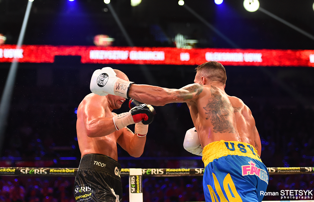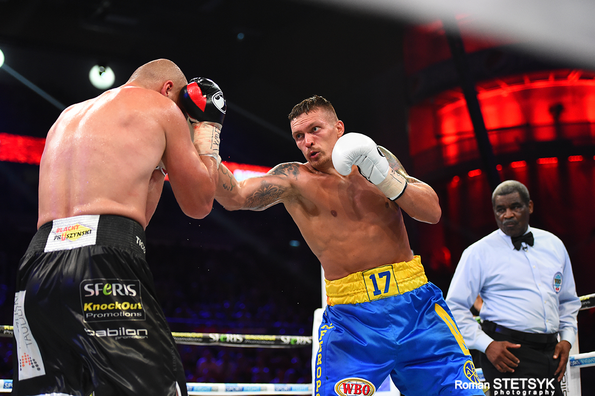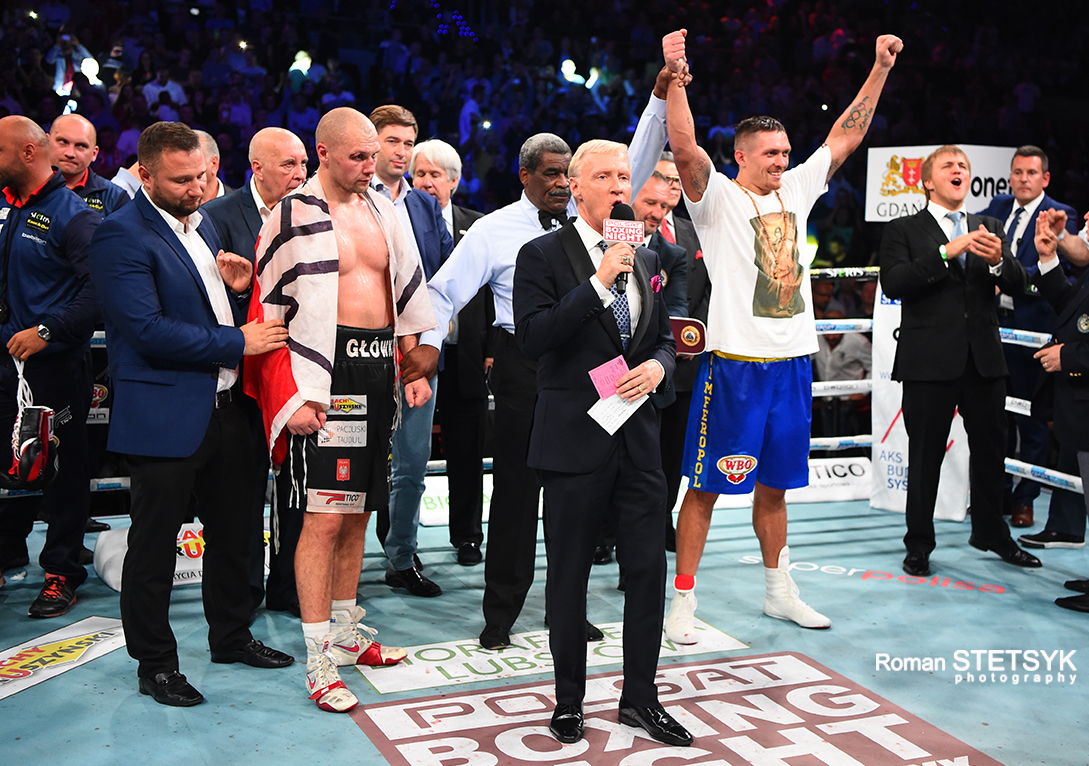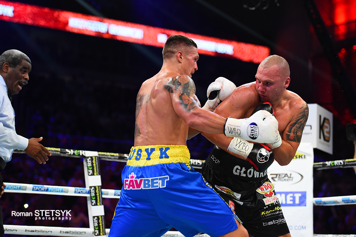 Вчера в польском Гданьске украинский боксер Александр Усик победил поляка Кшиштофа Гловацки и стал чемпионом мира в тяжелом весе по версии WBO. Предлагаем вашему вниманию фото с поединка.