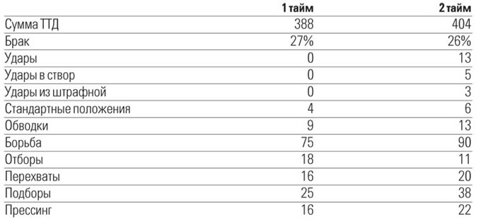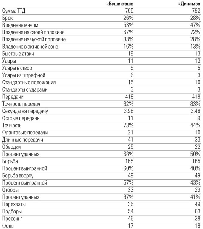 Командные показатели ТТД в матче «Бешикташ» — «Динамо»