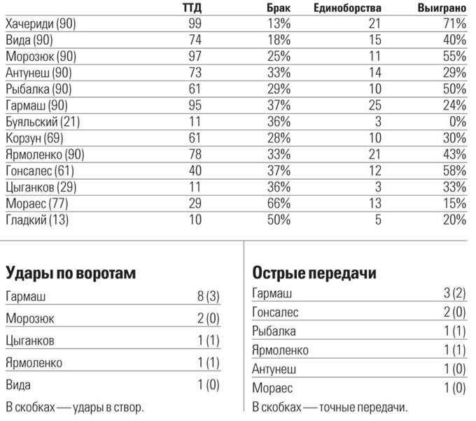 Показатели игроков «Динамо» в матче с «Бешикташем»