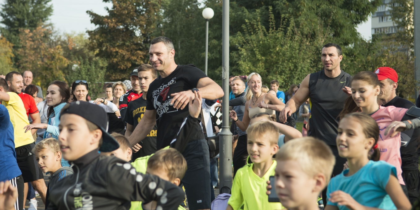 Мэр Киева Виталий Кличко вместе со своим братом Владимиром приняли участие в утренней разминке