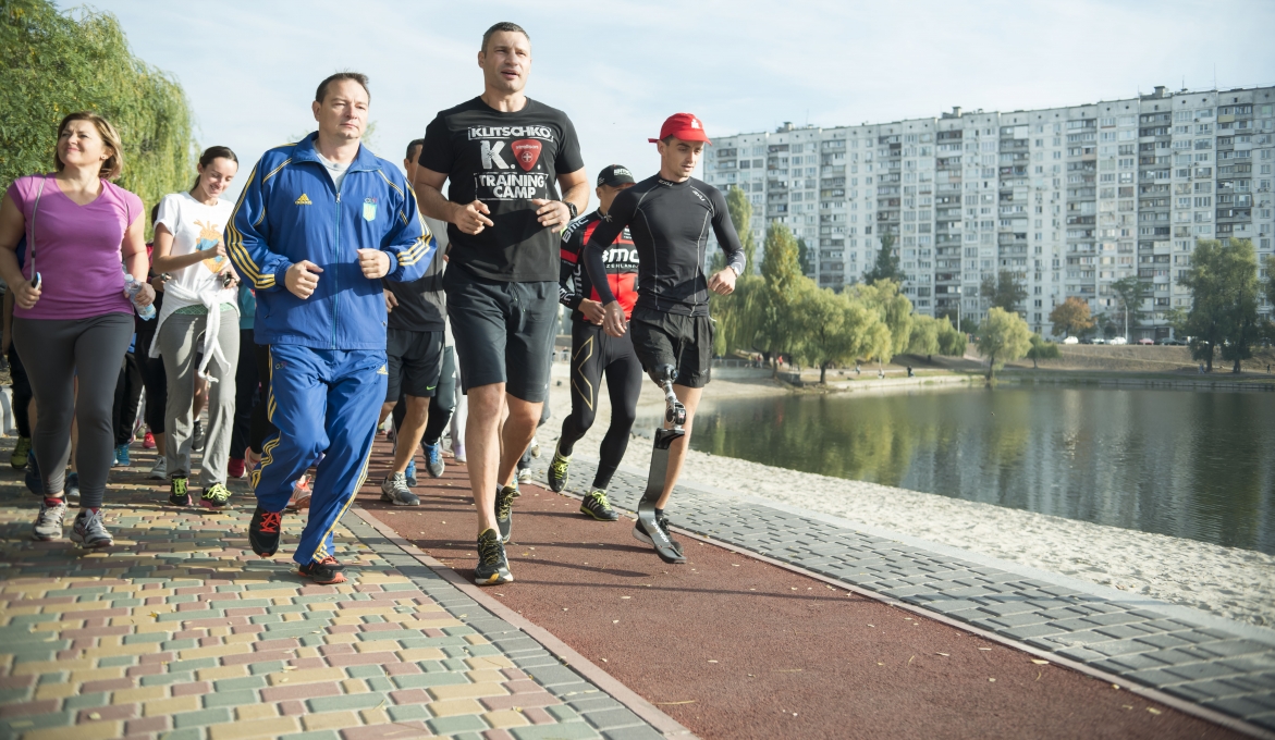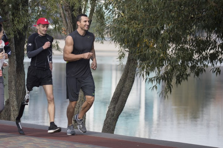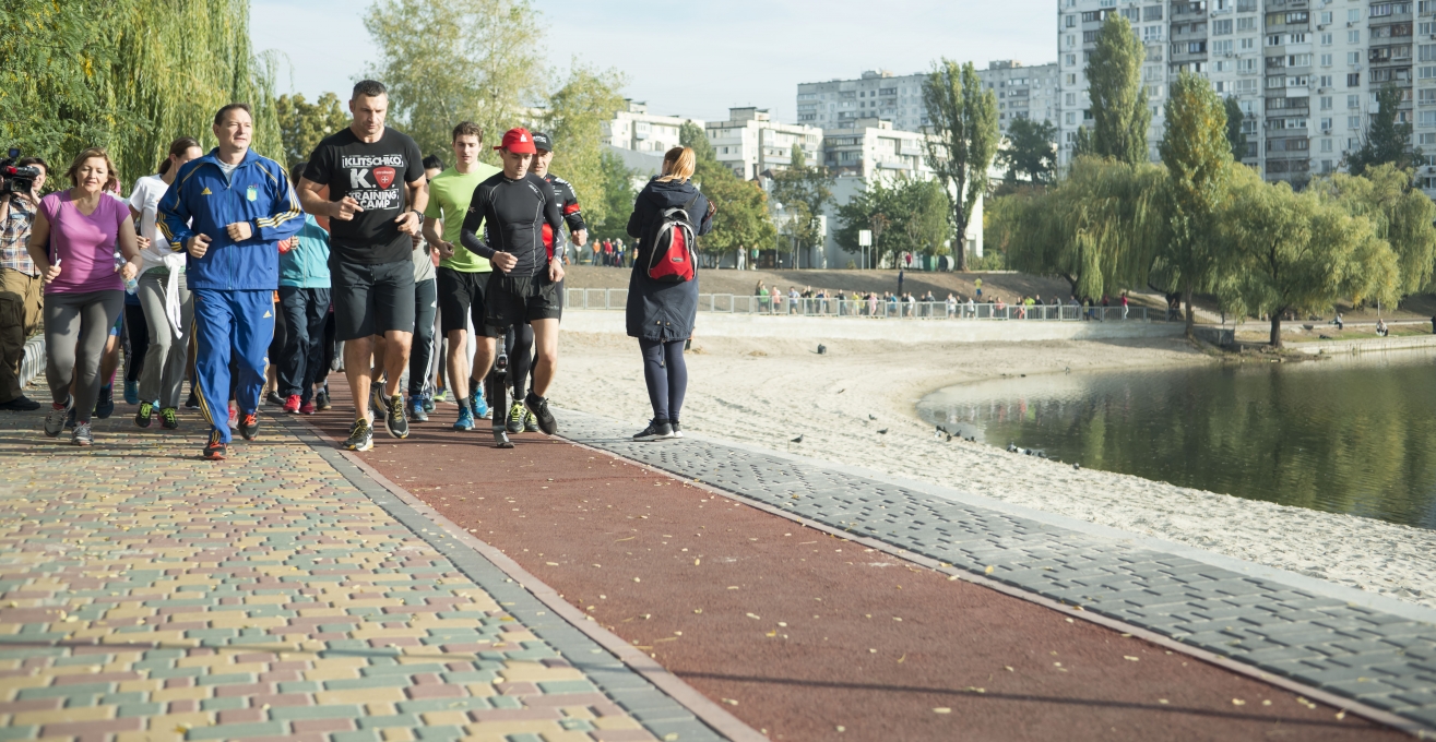 Мер Києва Віталій Кличко разом із братом Володимиром взяли участь у ранковій розминці та протестували найбільшу в Україні нову бігову доріжку, яку облаштували навколо озера Тельбін.