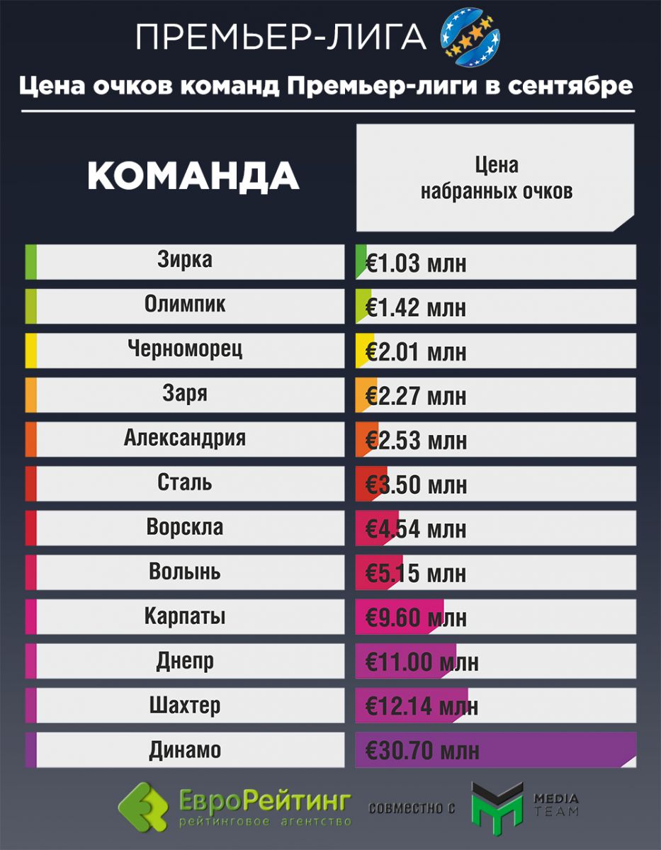 Сравнение качества игры, полученного результата и стоимости команд позволяет более полно оценить достижения тренеров в сентябре. Достаточно взглянуть на приведенную ниже информацию, чтобы понять, насколько успешно тот или другой наставник распоряжались вверенным ему коллективом.