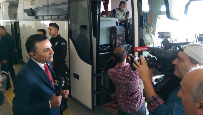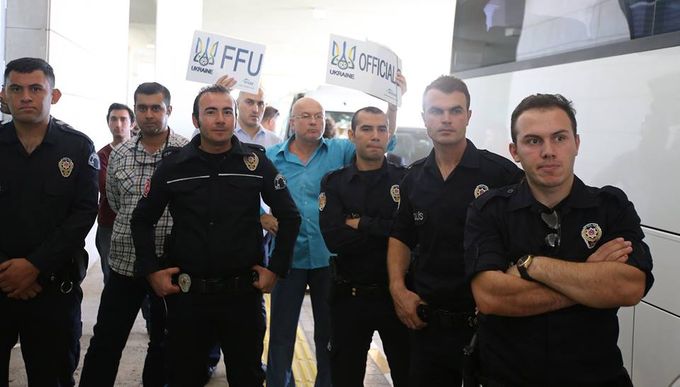Не успел тренер сборной Андрей Шевченко спуститься по трапу, как его окружил турецкий экипаж самолета для того, чтобы сделать с ним селфи. Возле автобуса сборной игроков и тренеров встретили турецкие журналисты и кордон из местных полицейских, для которых прилет нашей делегации стал настоящим событием.