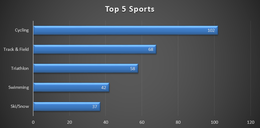 Самым «допинговым» видом спорта хакеры назвали велоспорт — разрешения на допинг получили 102 человека. Также в тройку лидеров вошли легкая атлетика (68) и триатлон (58). Кроме того, 42 разрешения получили пловцы, 37 — представители зимних видов.