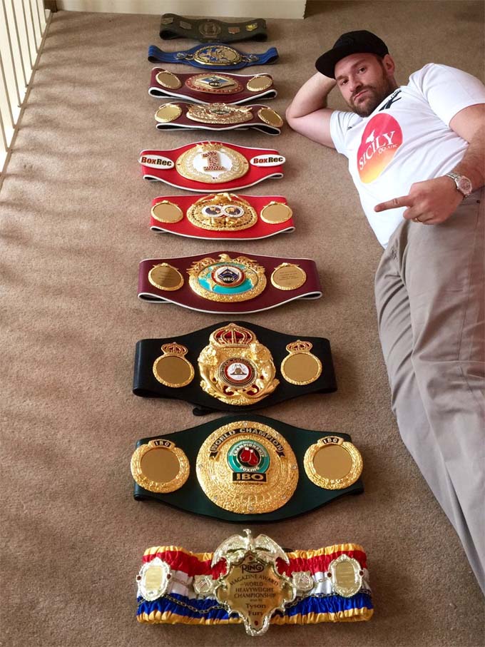 В своем Twitter Фьюри выложил фотографию со всеми поясами, намекая, что в скором времени у него их могут отобрать.