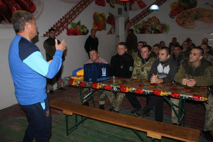 У ході зустрічі відомий тренер відповідав на запитання прикордонників, які в більшості стосувалися виступів Національної збірної України з футболу, та на згадку про свій візит подарував футбольний м’яч з автографами відомих українських футболістів. Також військовослужбовці мали змогу отримати автографи та сфотографуватися з відомим футбольним фахівцем.