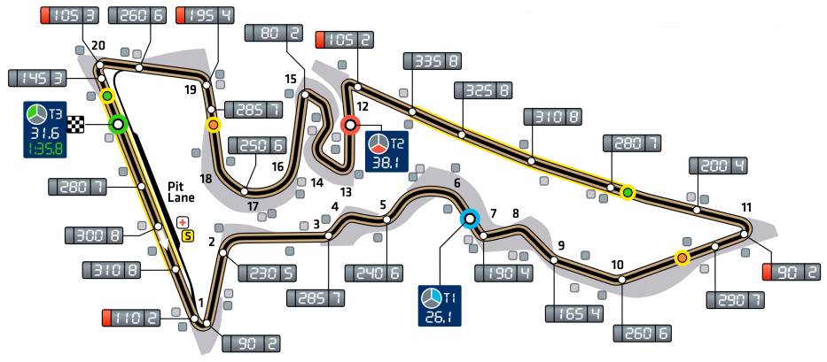 кваліфікація: 1’35.657 (2012, Себастіан Феттель) гонка: 1’39.347 (2012, Льюіс Хемілтон) |