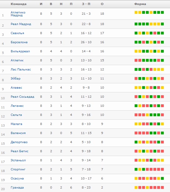 «Лас Пальмас» тоже удостоился обильных комплиментов на самом старте чемпионата, однако в последних турах значительно сдал, уже четыре матча подряд не зная побед. Однако островитяне все еще остаются в верхней части турнирной таблицы, занимая седьмое место.