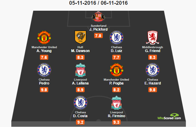 Уже к 65-й минуте команда Антонио Конте забила пять безответных мячей. Причем, все настолько легко складывалось для «синих», что, если бы они хотели, то забили бы все 10 голов. Игру сделала великолепная атака с Диего Костой и Эденом Азаром в главных ролях. Испанец забил уже девятый гол в сезоне, продолжая лидировать в списке лучших бомбардиров, а бельгиец оформил первый личный дубль в нынешнем сезоне. Кроме того, оба отличились еще по одному ассисту. Также выделил бы игру Педро и Маркоса Алонсо, отлично сыгравших на атаку.