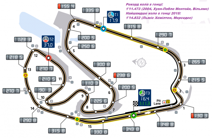 кваліфікація: 1’10.023 (2014, Ніко Росберг) гонка: 1’11.473 (2004, Хуан-Пабло Монтойя) |