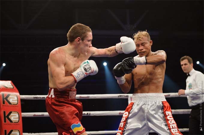 В субботу в ТРЦ «Терминал» (Бровары) Чемпион Европы по версии WBO в полулегком весе Олег Малиновский (18-0, 5 КО) провел первую защиту титула в бою с испанцем Эусебио Осэхо (28-18-3, 8 КО) по прозвищу «Гремучая змея». Невзирая на то, что соперник украинского боксера не вложился в вес и на кону не стоял чемпионский пояс, наш спортсмен одержал победу в напряженном поединке. Все трое судей отдали победу Олегу Малиновскому со счетом 98:91, 97:92 и 96:93.