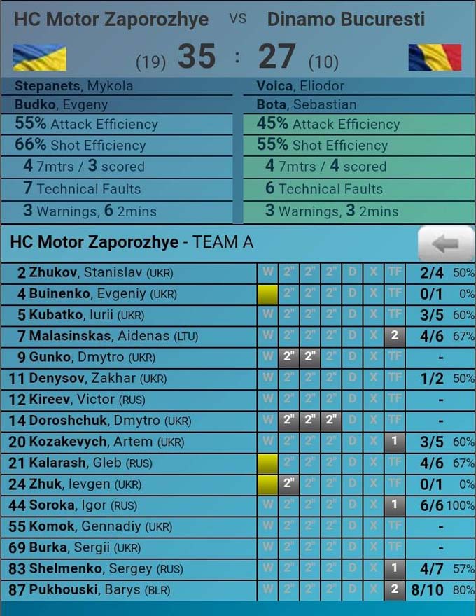 «МOTOP» (Запорожье) - «Динамо» (Бухарест) – 35:27 (19:10)