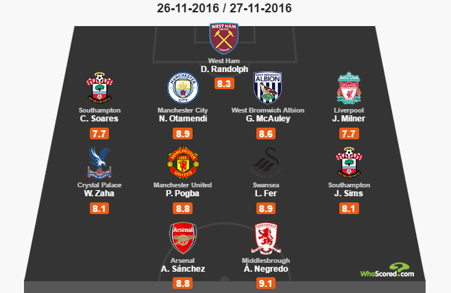 Голы: Санчес, 12, 90+1, Уолкотт, 53 – Уилсон, 23 (с пенальти)