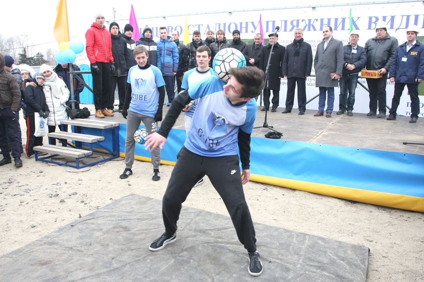 В знаменательном событии приняли участие заместители городского головы Михаил Лысенко и Александр Шикуленко, депутат городского совета Днепра Камиль Примаков, вице-президент Ассоциации пляжного футбола Украины Андрей Кунцевич, председатель городской ассоциации футбола Виктор Андрухив и народный депутат Украины Иван Куличенко. Последний рассказал о важности такого стадиона для города.