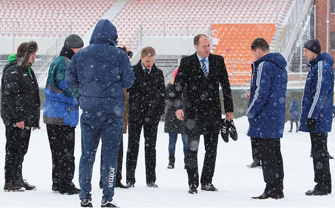 «Наша пісня гарна й нова, починаймо її знову»… Отмененные из-за погодных условий поединки Кубка Украины ничему не научили футбольных функционеров. «Олимпик» должен был принять «Карпаты» на сумском стадионе «Юбилейный», но за полтора часа до начала поединка главный арбитр встречи Дмитрий Кутаков принял вполне справедливое решение не проводить матч на заснеженном поле, три четверти которого, согласно рапорту, покрывал лед. На таком газоне можно в хоккей играть. Или, в крайнем случае, в снежки. Но в футбол?!