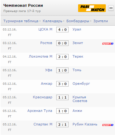 Все результаты 17-го тура: