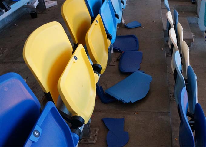 «Мы пока еще продолжаем оценивать нанесенный стадиону ущерб, но уже сейчас известно, что сломано порядка 300 пластиковых кресел. Стоимость каждого из них — около трех тысяч гривен. Кроме того, сломаны пластиковые урны, ограждения, повреждена медиа-трибуна. Изучаем ситуацию на предмет иных повреждений. Специальной комиссии еще предстоит назвать точную сумму нанесенного ущерба, но уже сейчас можно точно сказать, что она будет не меньше миллиона гривен», — сказал Анисимов.
