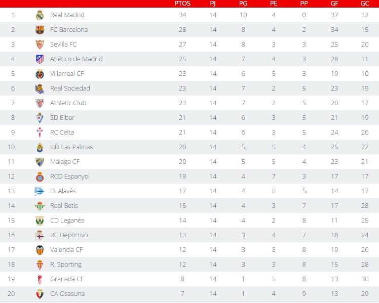 «Атлетико» выдал свой худший старт в чемпионате в эру Симеоне (25 зачетных пунктов в 14 матчах). Соответственно, из чемпионской гонки мадридцы пока что выключились. Воспользоваться ничьей в «эль класико», мадридцы не смогли, в прошлом туре сыграв вничью с «Эспаньолом». Таким образом, после 14-туров «Атлетико» занимает четвертое место турнирной таблицы. Однако за это мадридцы должны сказать спасибо, как раз, «Вильярреалу». Кастельонцы в последних трех матчах заработали только один зачетный пункт, из-за чего распрощались с четвертым местом Примеры.