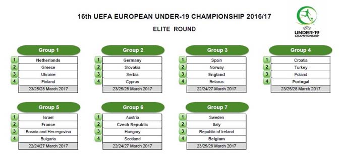 В Ньоне прошла жеребьевка элитного раунда чемпионата Европы-2016/17 среди юношей до 19 лет, по итогам которой сборная Украины попала в группу к Нидерландам, Греции и Финляндии.