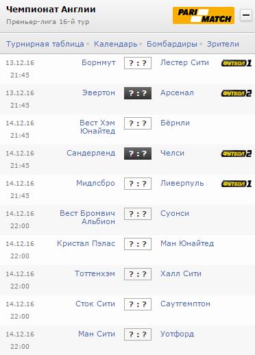 Все матчи 16-го тура: