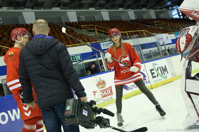 А тем временем польская телеведущая TVP2 Лидия Печота одела хоккейную амуницию и попробовала себя в роли игрока.