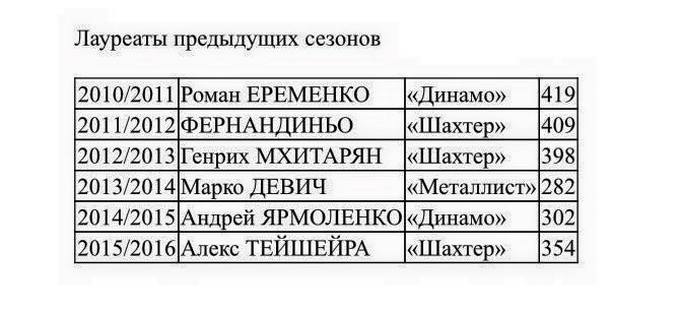 В десятке лучших футболистов – 8 представителей «Шахтера» и 2 игрока «Динамо», причем за «горняками» остались первые шесть строчек списка.