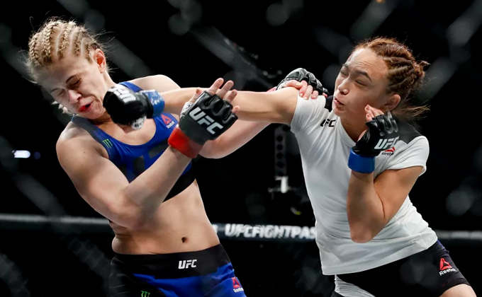 Профессиональные бойцы женских смешанных единоборств Мишель Уотерсон и Пейдж Ванзант весело провели процедуру взвешивания перед очным поединком: