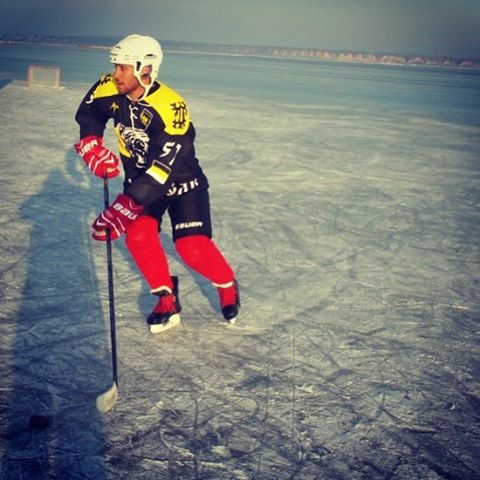 Украинский боксер Василий Ломаченко показал, что может погонять и в хоккей на открытом воздухе