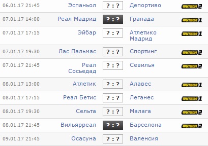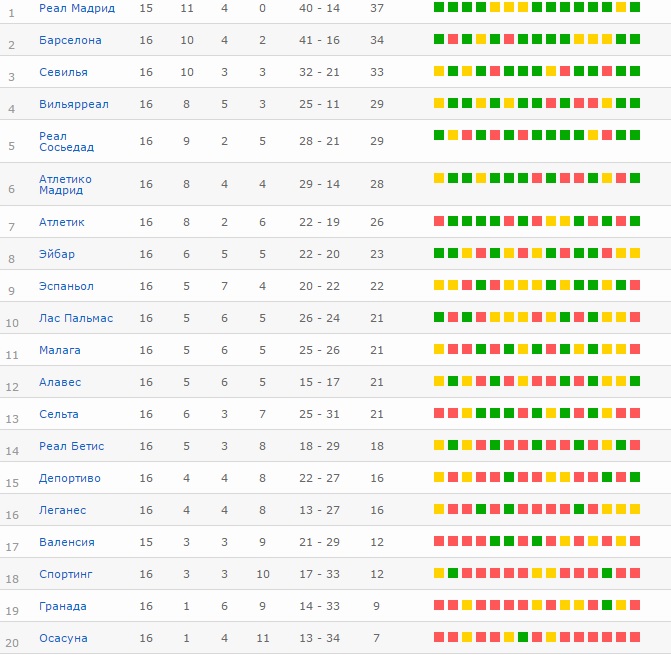 Продолжит программу тура матч между баскским «Эйбаром» и мадридским «Атлетико». Обе команды на неделе уверенно обыграли своих оппонентов в Кубке Короля. Более того, в турнирной таблице «оружейники» и «матрасники» находятся почти по соседству. «Атлетико» после 16-ти туров заработал 28 очков и занимает шестое место турнирной таблицы; «Эйбар» имея в активе 23 очка – на восьмом месте.