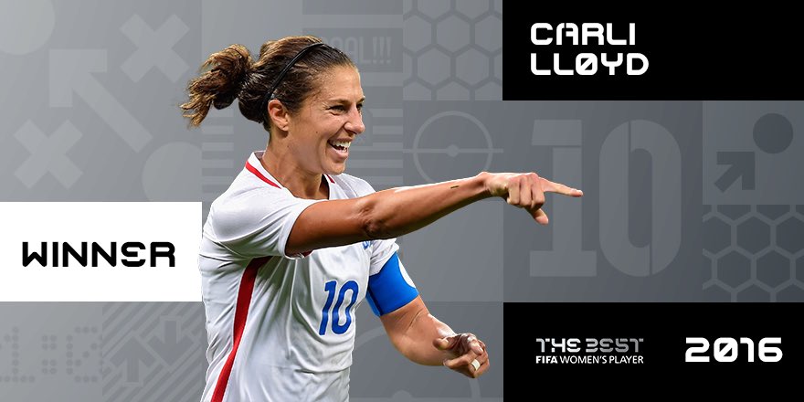 Лучшей футболисткой года названа американка Карли Ллойд.