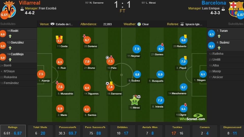 После этого было еще удаление Косты, которое, скорее даже было на руку кастельонцам, так как Хайме смог потянуть время, что, в итоге, позволило его команде добиться ничейного результата в матче против «Барселоны».