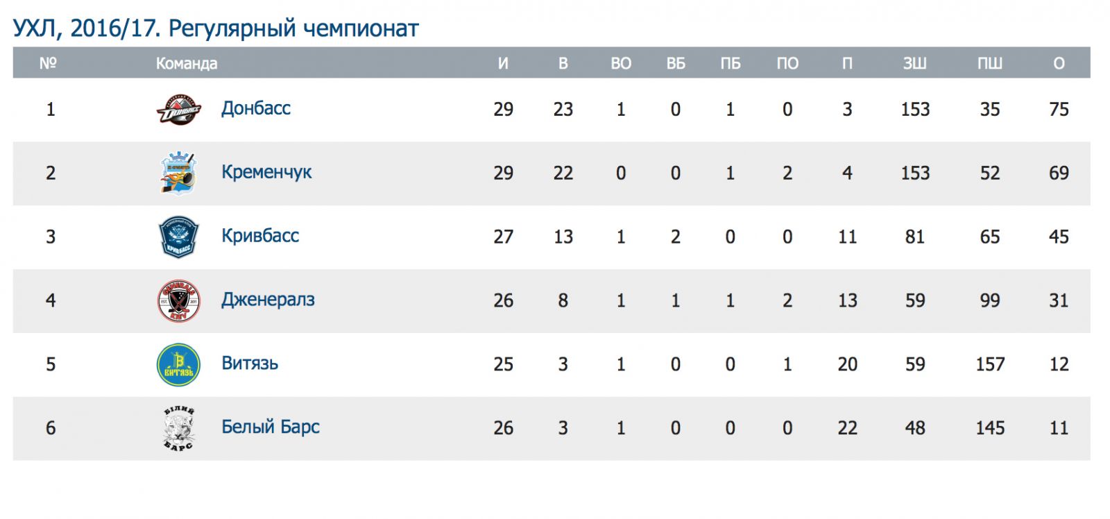 Турнирная таблица чемпионата Украины по состоянию на 13.01.17 выглядит так: