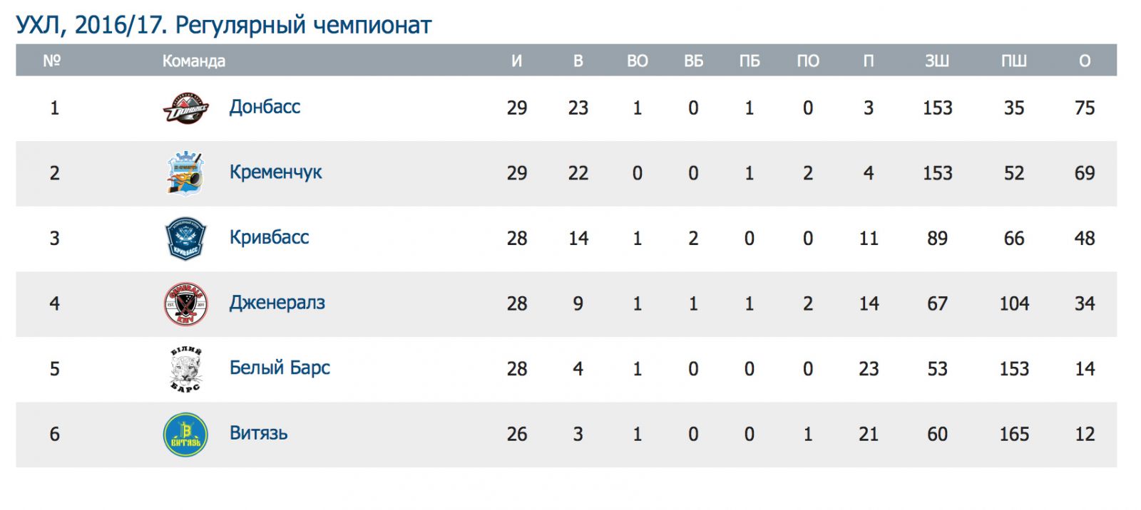 Турнирная таблица чемпионата Украины по состоянию на 18.01.17 выглядит так