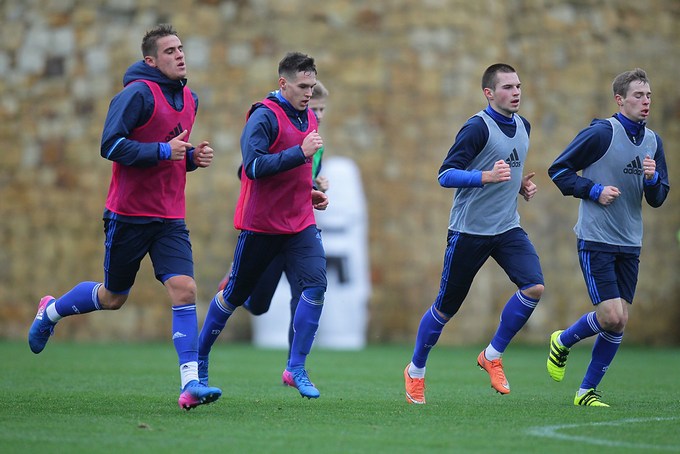 После разминки продолжающий восстановление Валерий Федорчук поступил в распоряжение к тренеру-реабилитологу Борису Пейреку, а остальные 28 футболистов были поделены на четыре команды по семь человек (включая вратарей) и начали выполнять игровое упражнение на двух импровизированных мини-полях под руководством Сергея Реброва и его ассистентов.
