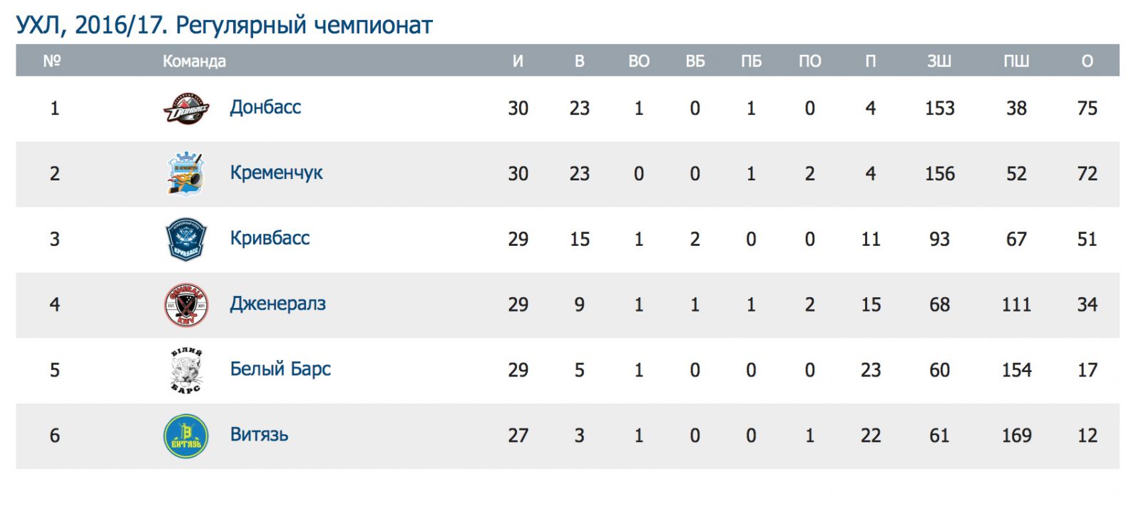 Турнирная таблица чемпионата Украины по состоянию на 20.01.17 выглядит так: