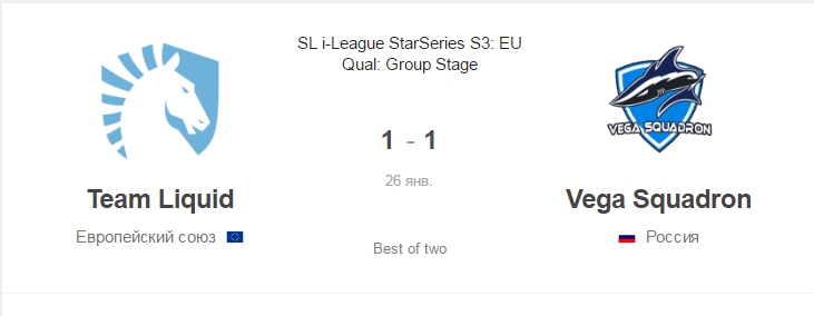 Сражения третьего тура продолжились матчем между Team Liquid и Vega Squadron. Две предыдущие встречи «жидких» завершились уверенными победами над Horde и Cloud 9, и к этому матчу команда KuroKy подходила в статусе лидера турнирной таблицы.