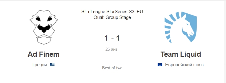 В заключительной встрече игрового дня встретились Team Liquid и AD Finem. По результатам упорной борьбы, команды разошлись миром, получив по одному очку в свой актив.