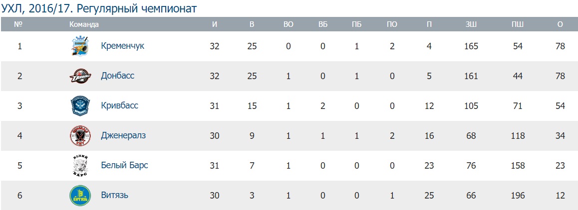 Турнирная таблица чемпионата Украины по состоянию на 28.01.17 выглядит так: